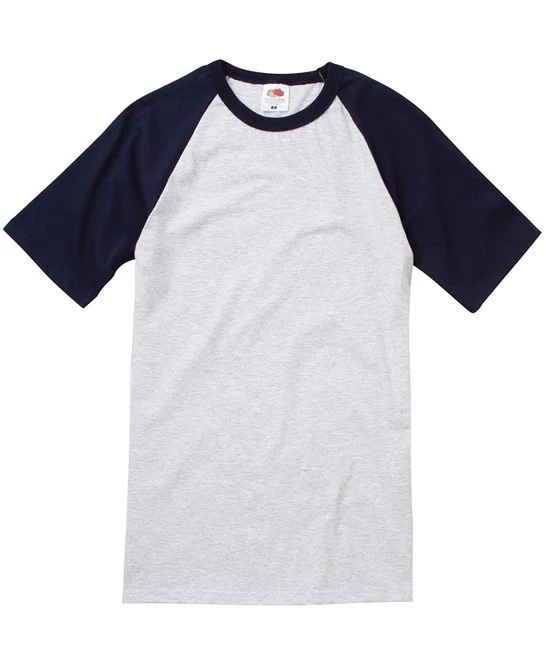 Featuring a sporty contrast-colour cotton/Lycra® rib at the neck and raglan sleeves, the Fruit Valueweight Short Sleeve Baseball T delivers a classic look with a modern, tailored fit. Crafted from 100% cotton with a fine knit gauge for superior printability, it’s an ideal choice for retail, licensing, and tourism use. Make it your own with complete customization freedom.- Fabric: 100% Cotton